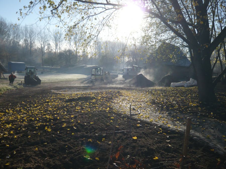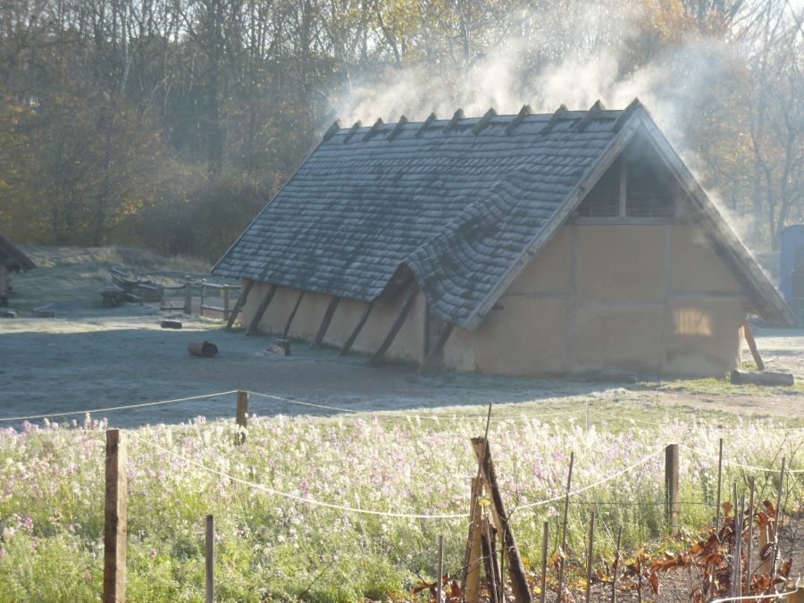 Seit dem Sommer 1999 rekonstruieren wir mit Kindern und Jugendlichen frühmittelalterliche Gebäude mit entsprechender Umwelt. Inzwischen gibt es ein Grubenhaus, ein slawisches Blockhaus, ein wikingerzeitliches Langhaus, ein Pfostenhaus, die Kirche, eine Klosterscheune mit Hühnerstall, Gärten, eine Schmiede…