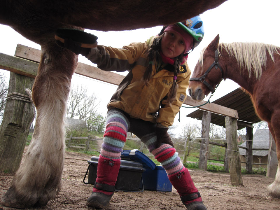 Zunächst war uns wichtig, für die bestehenden Ansprüche der Nutzung vor allem Kaltblüter anzuschaffen. Wegen seiner regionalen Verwurzelung und weil es auf der roten Liste der vom Aussterben bedrohten Haus- und Nutztierrassen zu finden ist, haben wir uns für das Schleswiger Kaltblut entschieden. Die artspezifischen Qualitäten wie besondere Robustheit und Gutmütigkeit machen sie zu geeigneten Partnern in der tiergestützten Pädagogik. Besonders im Umgang mit Kindern sind diese wichtig. Weiterhin haben wir Ponies für die kleineren Pferdeleute. Die Zusammenarbeit mit unterschiedlichen Partnern ermöglicht erst die Haltung und den Einsatz der Pferde.